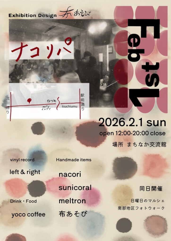 当日はハンドメイドアイテムの出店や、ドリンク・フードもお楽しみいただけます。 日曜日のマルシェ、南部地区フォトウォークも同日開催です。