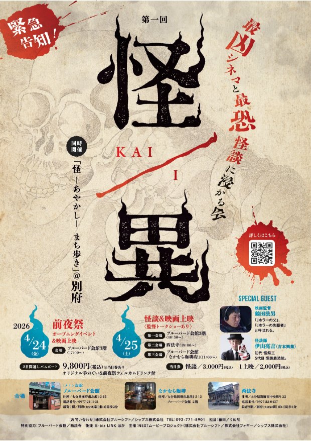 | 日程 | 2026年4月24日(金)前夜祭|4月25日(土)怪談 & 映画上映 |