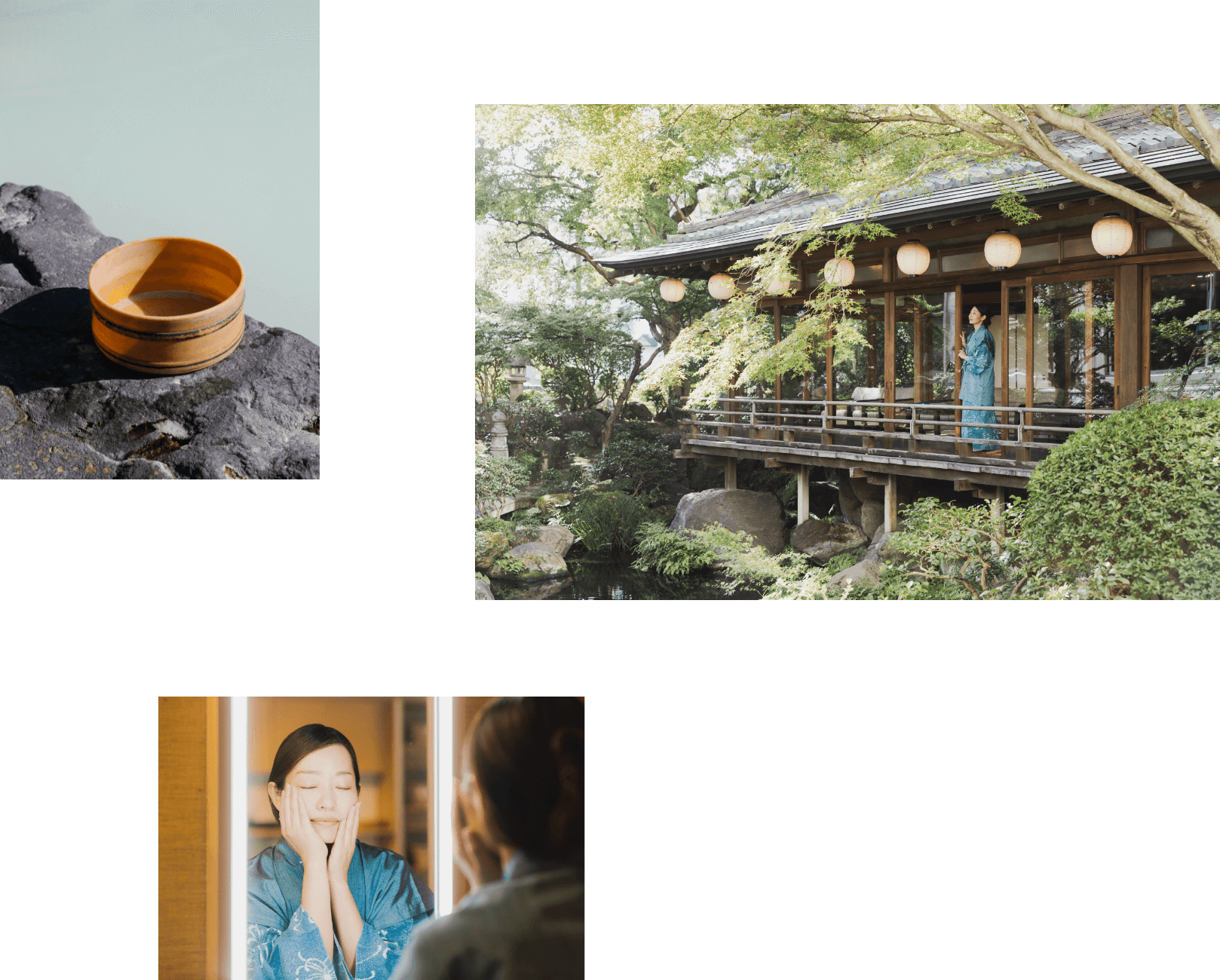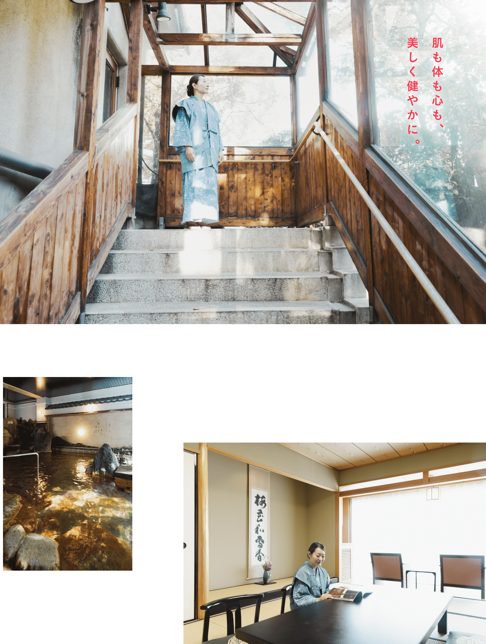 優しくほぐされる温泉。くすみをオフしてしなやかな印象へ。