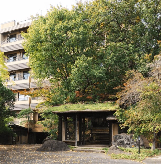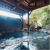 旅情を誘う佇まいの門をくぐると、木々に囲まれた静かな庭が広がります。豊富な湯量を誇る天然温泉かけ流しの温泉が楽しめる『湯の里葉山』の温泉は、肌にやさしい塩化物泉。保温作用で、湯上がり後のぽかぽかも長続きします。湯治場の面影を残す岩風呂大浴場「河童の湯」「兎の湯」をはじめ、趣の異なる3つの貸切風呂「桜の湯」「椿の湯」「天使の湯」があり、鉄輪の名湯を心ゆくまで堪能できます。