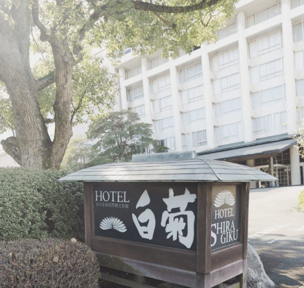 1950年の創業以来、たくさんの旅行客の“旅の思い出の1ページ”を彩ってきた『ホテル白菊』。客室からは別府タワーや別府湾といった別府を象徴する景色を一望でき、食や温泉などをとおして、唯一無二のゆるやかな「白菊時間」を過ごせると、大人の旅に選ばれています。