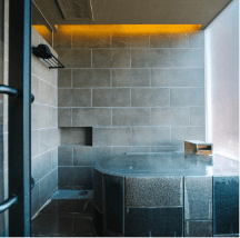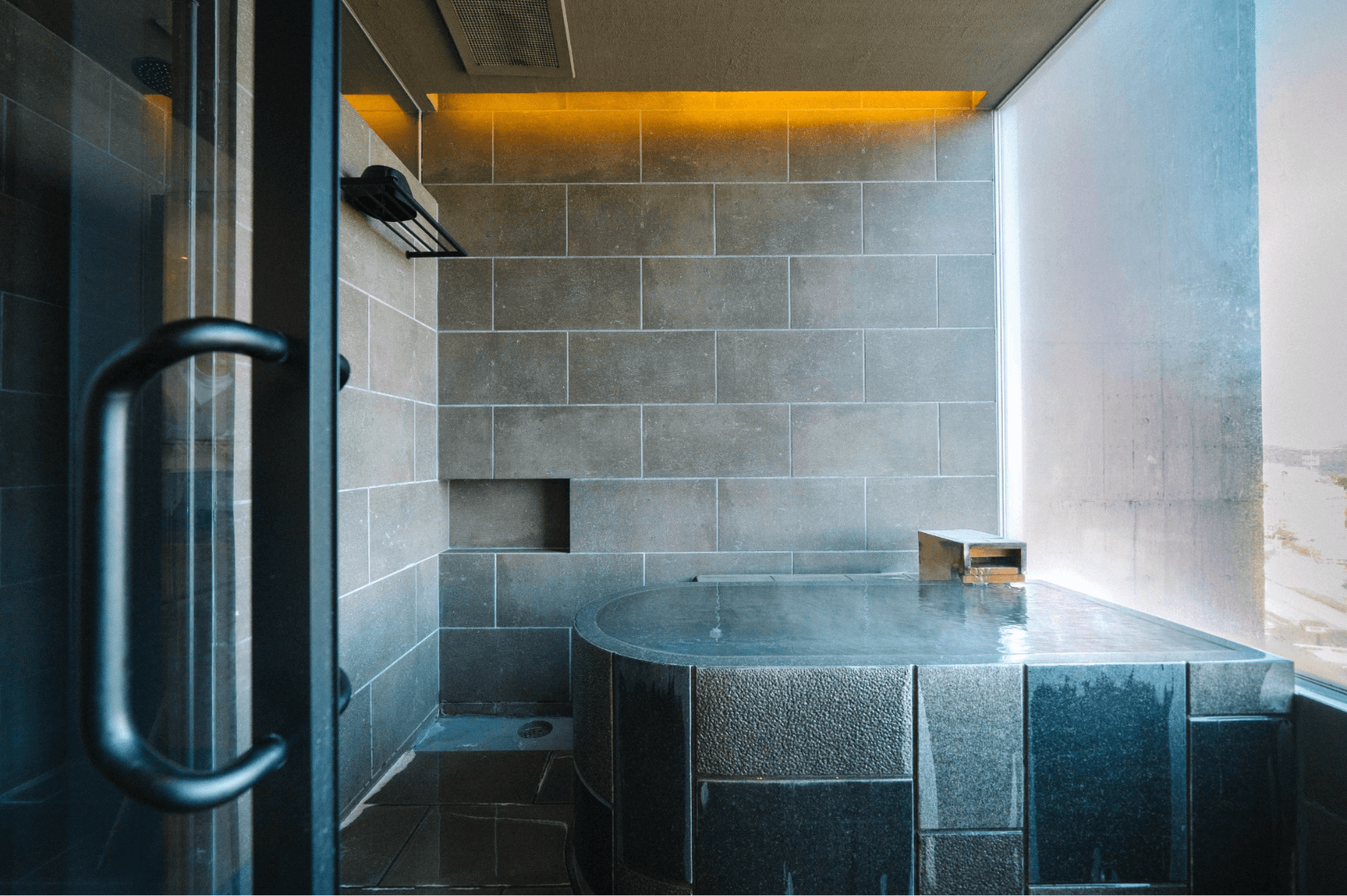 やわらかな湯ざわりと、別府のまちに立ちのぼる湯けむりに包まれるような心地よさは、別府の名湯そのもの。客室で好きな時間に浸かれるため、滞在中は何度でも温泉の恵みを味わえます。「アート」「温泉」という別府の魅力をかけあわせることで生まれる、新感覚ステイを堪能してください。