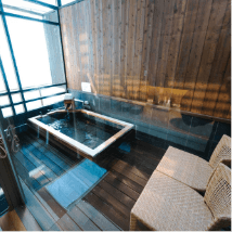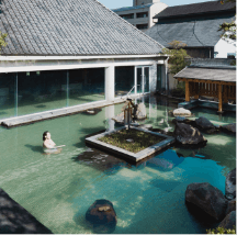 温泉は重曹成分を含む塩泉。体を芯から温めて、肌をなめらかに整えてくれます。大浴場は海に近い立地ならではの開放感が味わえ、内湯には8種類の由布岳の花をモチーフにした臼杵焼の壁が輝きます。温泉作用をより実感してもらうために、現代版の湯治体験「うるはし現代湯治」を提案。温泉の本質、入浴法、呼吸法などを知ることで、温泉の作用を最大限に感じられます。