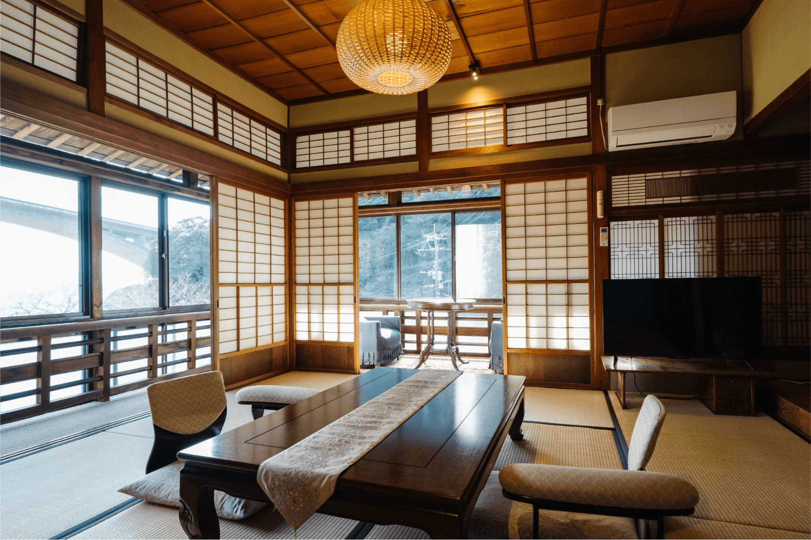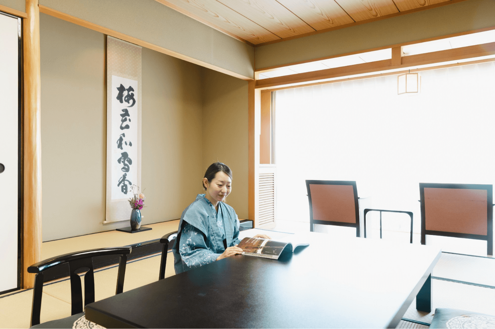 客室13室、山間ならではのひっそりとした秘境感が人気の老舗宿『岡本屋』。純和風の落ち着いた設えからも、明治8年の創業以来紡いできた歴史を感じられます。