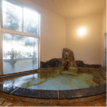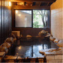 うっすらと青みがかった温泉は含硫黄・ナトリウム塩化物泉で、大・小浴場に加え、露天風呂付きの客室も2室完備。肌への負担がマイルドで保温・保湿性に優れた弱酸性泉なので、長期滞在にも適した泉質です。湯治カウンセラー(看護師/温泉利用指導者)が体質や目的に応じた効果的な入浴法をガイドしてくれるので、自宅でも入浴で健康になれる習慣が身につきます。