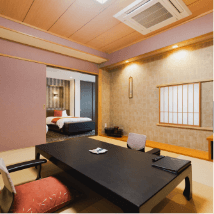 17室の客室は全て二間続きのゆとりある造りで、一部の客室は源泉かけ流しの温泉を楽しめる半露天風呂付き。別府名物の温泉地獄蒸しを取り入れた会席料理も評判で、湯の恵みと土地の味覚を一度に味わえるのも魅力です。温泉で、料理で、日常の疲れをゆったりとほぐす、くつろぎの時間を過ごせます。