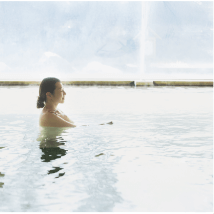 肌本来のもつ透明感に着目したモイスチャー温泉へ。湯上がり後は、ベタつきすっきり。