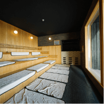 温泉のあとに館内にある「岩盤浴」へ。体の芯までしっかりと温まります。