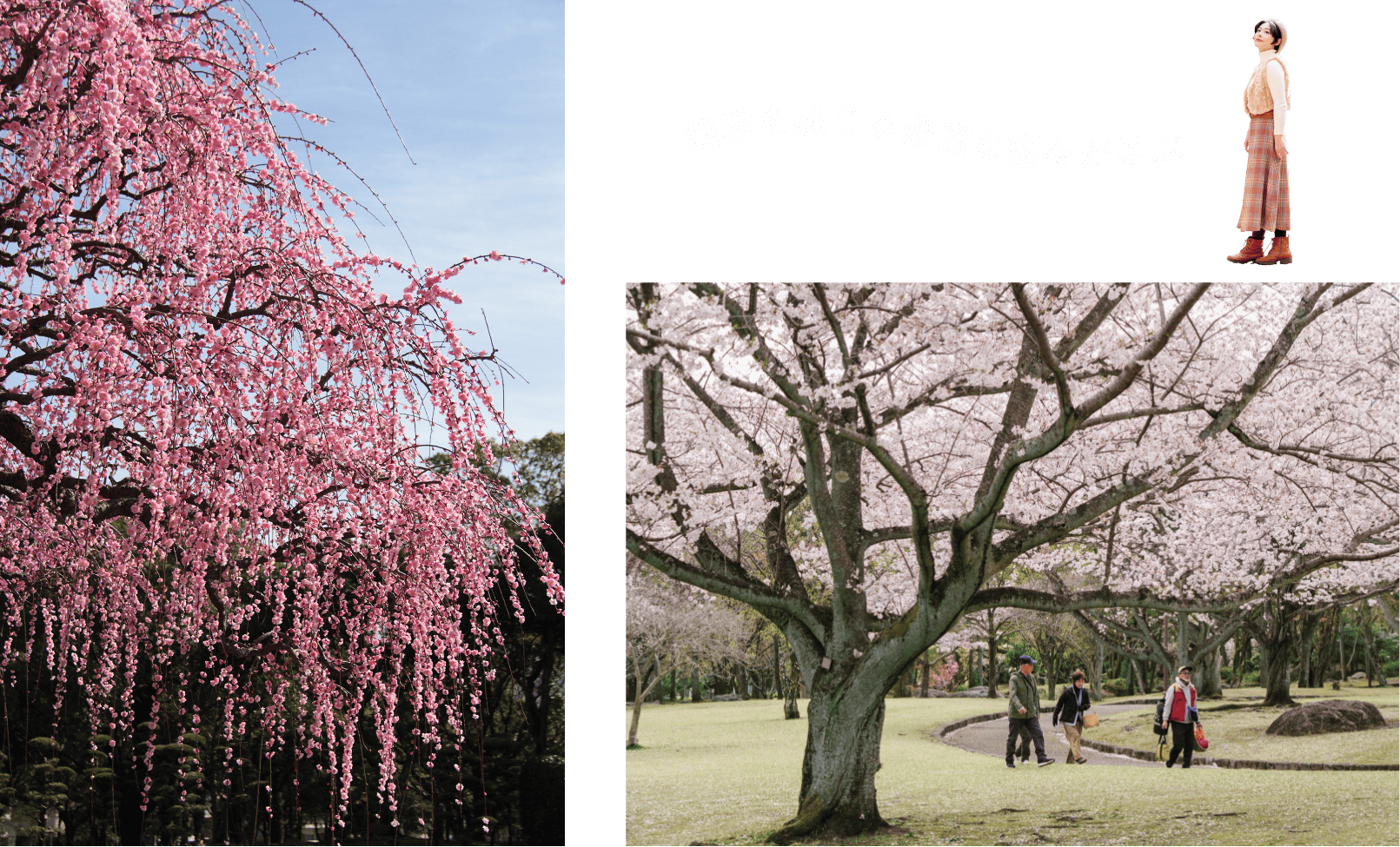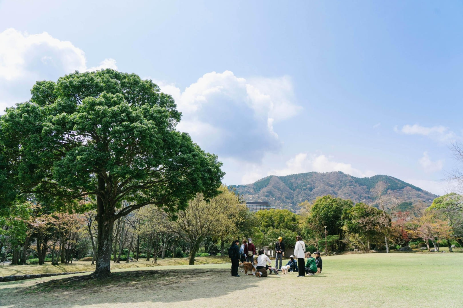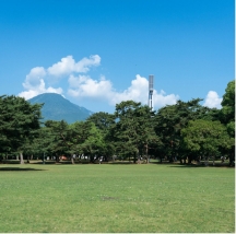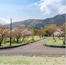 全体が緩やかな傾斜になっている公園です。ウォーキング、犬の散歩、ランニングなど、一周すればよい運動になる広さ。園内からは、迫力ある鶴見岳の姿も拝めます。梅や桜の名所として有名で、イチョウ、モミジ、キンモクセイなど約150種類の木があります。とくに、頭上に広がる見事なしだれ梅はファンが多く、2〜3月のシーズンには県内外から多くの人が見物に訪れています。別府ICからは5分程の立地で、ドライブ前後の休憩にもぴったり。
