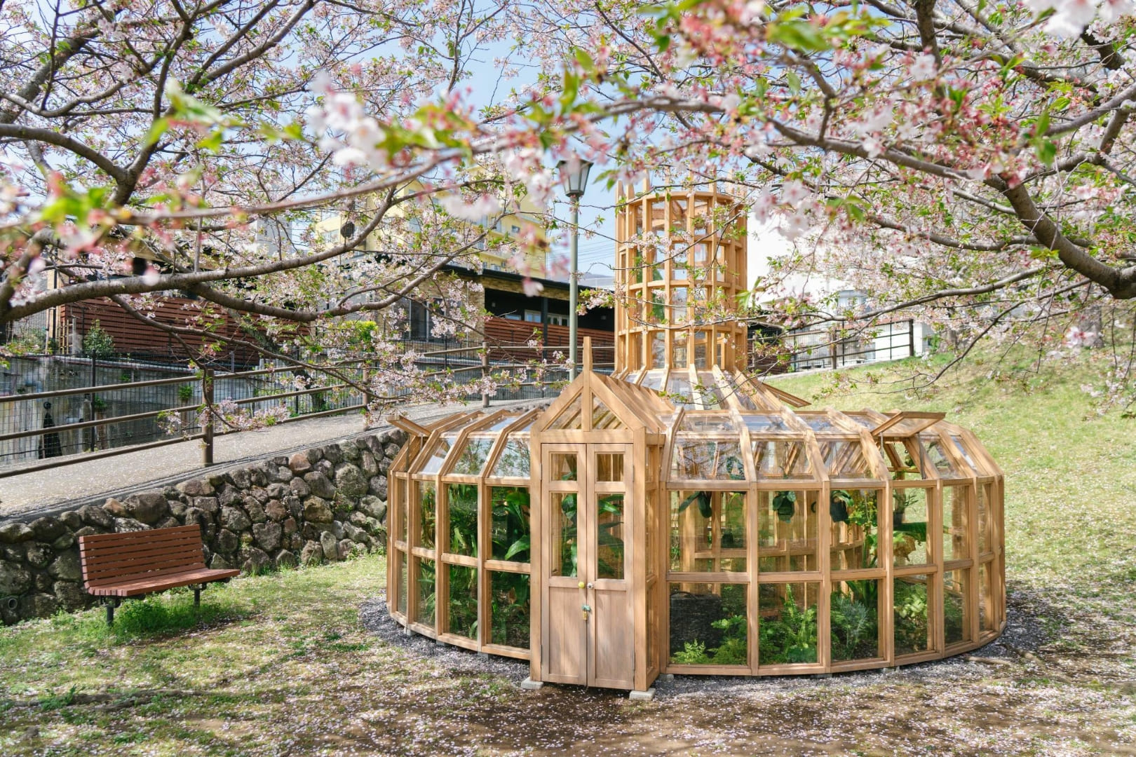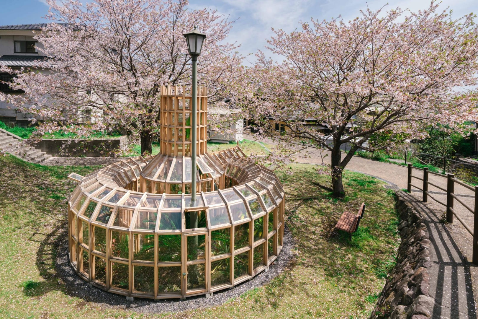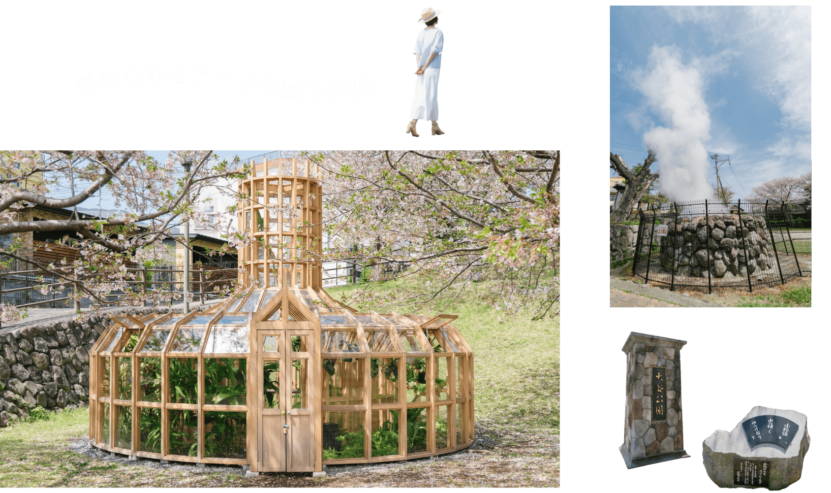 もうひとつの目玉は、アーティスト栗林隆作による『植物元気炉』です。ヒノキとガラスで作られた植物園型の作品で、全国から集まった植物が植えられています。地獄蒸しや蒸し湯体験ができる施設が近くにあるので、湯めぐりの合間にふらりと立ち寄ってみましょう。