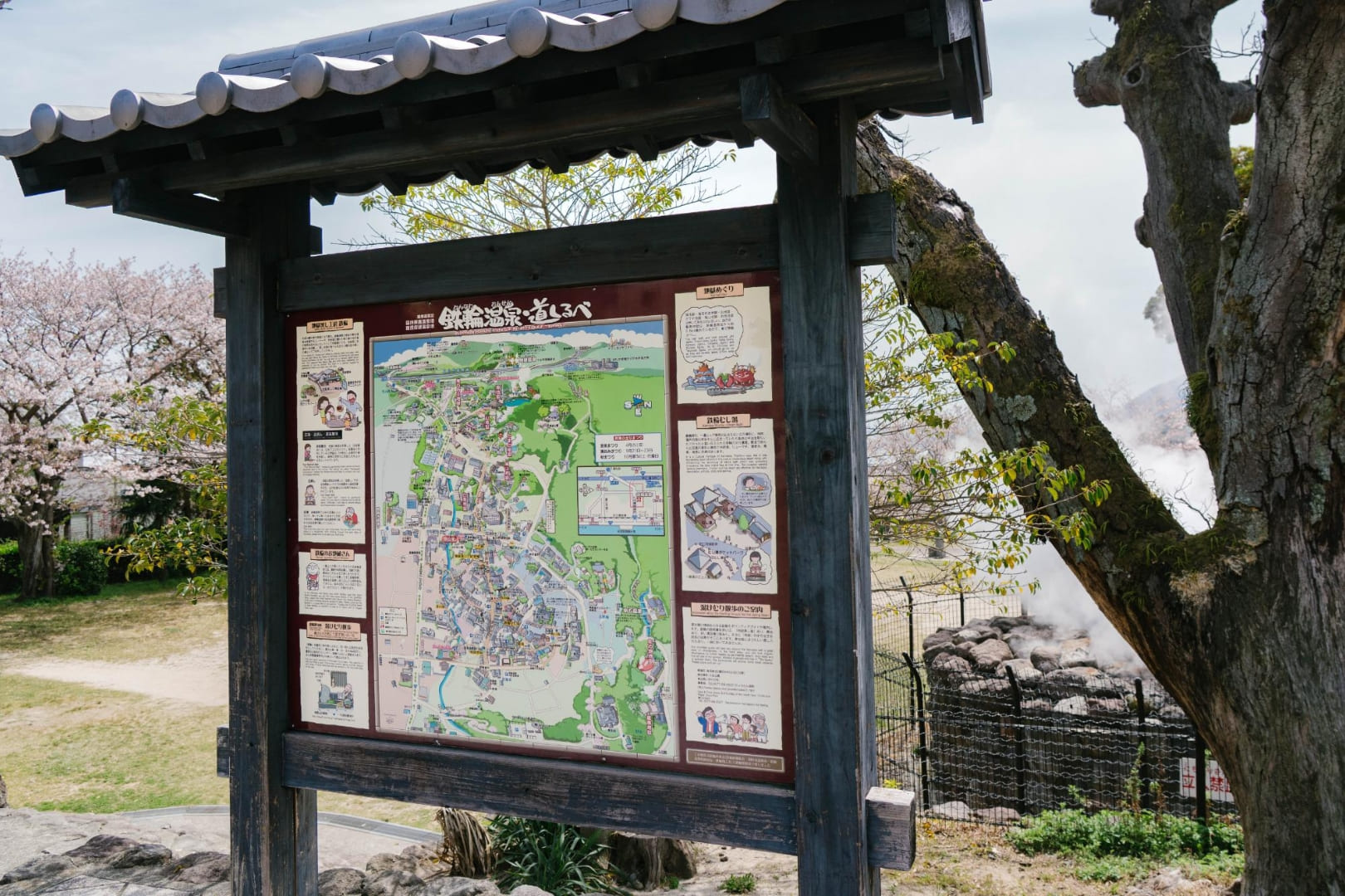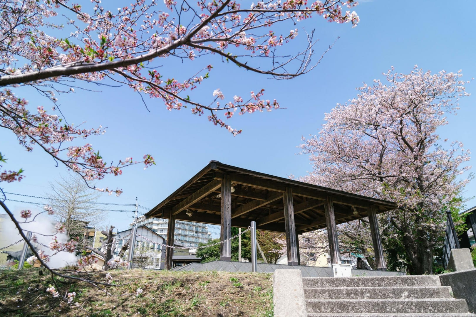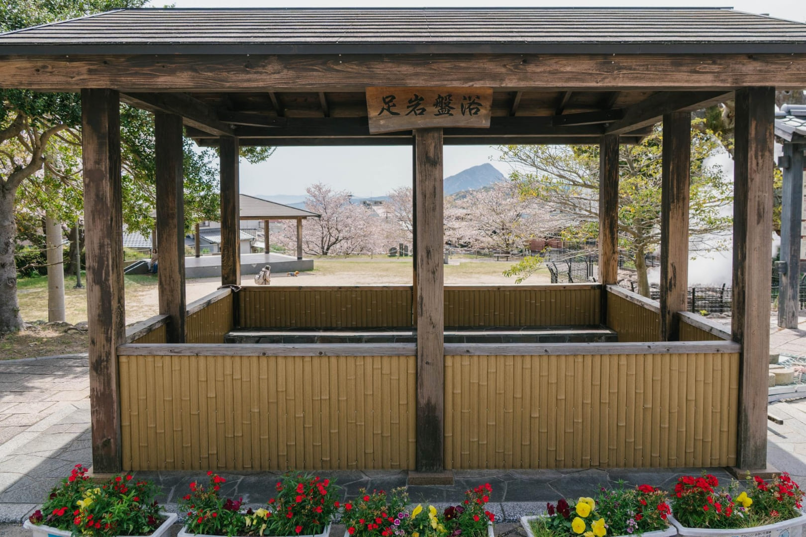 別府屈指の温泉地・鉄輪にある、温泉を感じられる公園です。園内の一画からはもくもくと湯けむりが立ち上り、間近で見ることができます。また、靴下のまま足の岩盤浴ができる屋根のついたベンチも無料で利用可能。