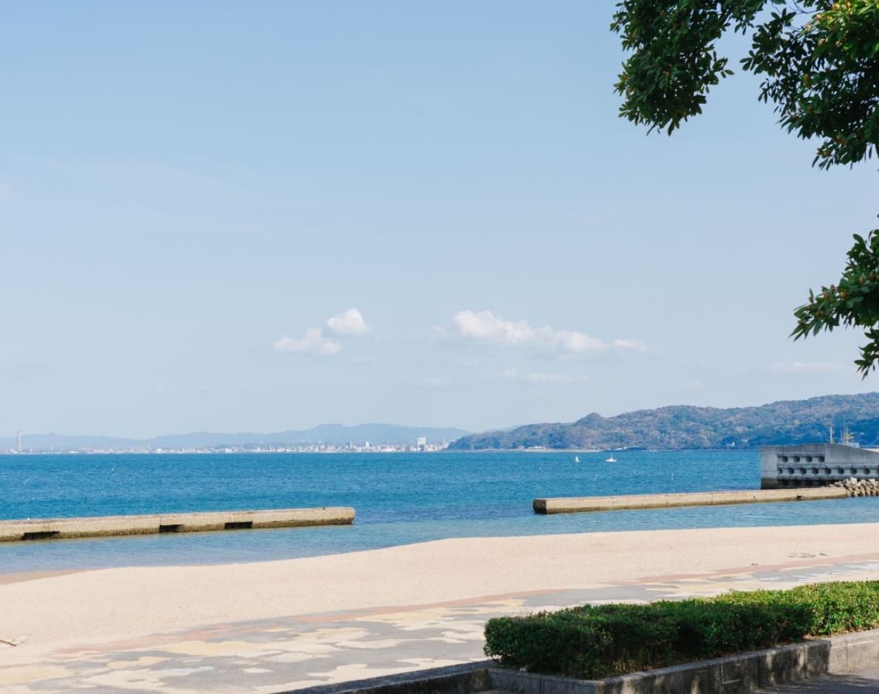 別府タワーのすぐそばにある、海沿いの公園です。道路からは樹木で隠れるような立地。健康遊具や噴水、銅像やモニュメントなどが設置されています。夏と冬には眼の前のスパビーチが花火大会の会場となり、大勢の人で賑わいます。普段はとても静かな公園。海を眺め、波の音を聞きながらゆったり過ごすのに最適です。海の向こうには、大分の工場地帯が見えることも。早朝や夜もぜひ訪れてみましょう。海岸線から昇る朝日や満月は声にならない美しさです。