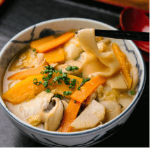 たくさんの観光客が行き交う坂の途中。店頭に地獄窯があるこのお店は、1955(昭和30)年の創業です。大分名物だんご汁はごぼう、人参、かぼちゃ、里芋、なす、白菜、小松菜など野菜たっぷり。豆腐と豚肉も入って、クセがなく食べやすい一品です。先代からの作り方を受け継ぎつつ、改良を重ねてきました。こんぶとかつお節で丁寧にとった出汁に、野菜のうまみと甘みが溶け込んだ、優しい味わい。太めのだんご麺はもっちりしていて、つるんとした喉越しです。ヘルシーなのに食べごたえ十分。サイドメニューは、とうもろこし、さつまいも、たまごの地獄蒸し、地獄釜の茶碗蒸し、とり天など。調理は一人で切り盛りしているので、時間に余裕をもってお越しください。