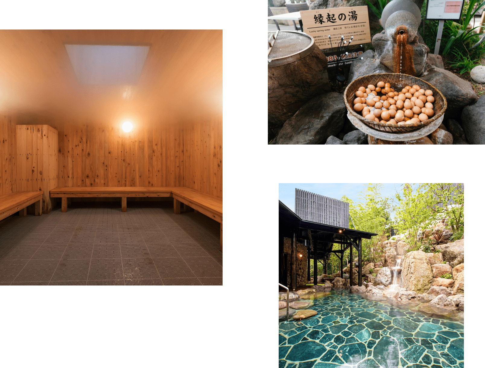 砂湯でじんわり汗をかいたあとは、大浴場にある“むし湯”に入るのがおすすめです。もくもくと立ち上る蒸気を全身で浴びることで温泉成分を肌に閉じ込めて、一層の美肌効果が期待できるのだとか。そのほか、温泉の蒸気で食材を蒸す鉄輪温泉ならではの調理法「地獄蒸し」料理が味わえる食事処や、湯上りに食べたい冷たいスイーツや温泉卵なども味わえ、まるでアミューズメント施設のようなワクワクも感じられます。