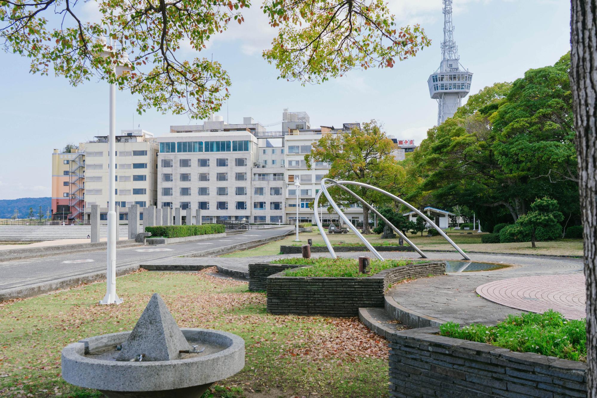 別府タワーのすぐそばにある、海沿いの公園です。道路からは樹木で隠れるような立地。健康遊具や噴水、銅像やモニュメントなどが設置されています。夏と冬には眼の前のスパビーチが花火大会の会場となり、大勢の人で賑わいます。普段はとても静かな公園。海を眺め、波の音を聞きながらゆったり過ごすのに最適です。海の向こうには、大分の工場地帯が見えることも。早朝や夜もぜひ訪れてみましょう。海岸線から昇る朝日や満月は声にならない美しさです。