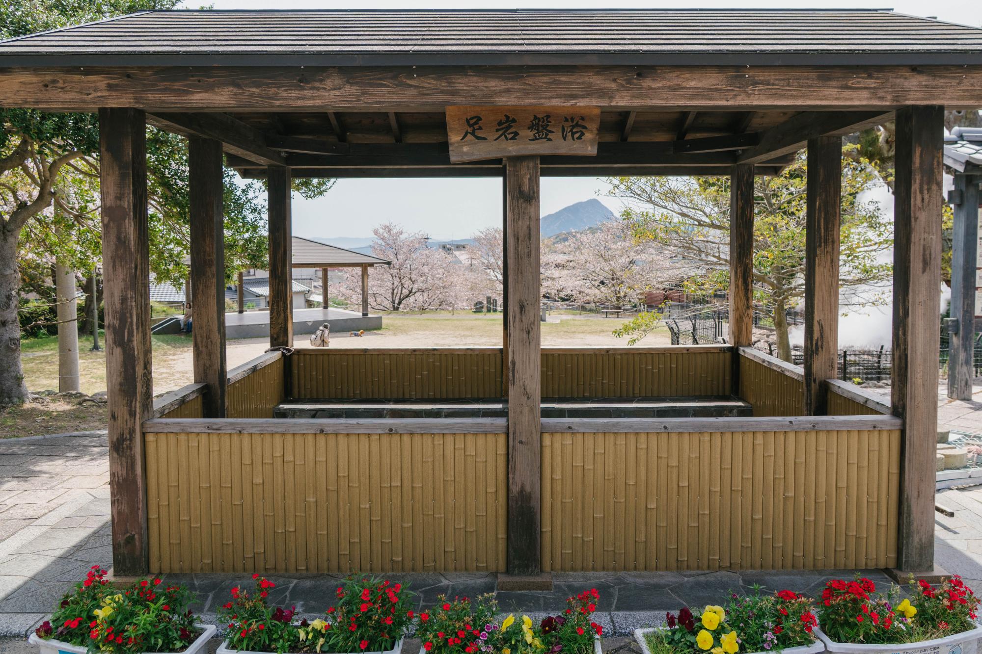 園内の一画からはもくもくと湯けむりが立ち上り、間近で見ることができます。また、靴下のまま足の岩盤浴ができる屋根のついたベンチも無料で利用可能。